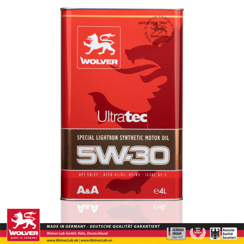 • Wolver UltraTec 5W30 là dầu tổng hợp thuộc dòng sản phẩm cao cấp từ Wolverlab Đức, sử dụng công nghệ phụ gia mới nhất, cung cấp các tính năng vượt trội về khả năng làm sạch động cơ, bảo vệ chống mài mòn và tiết kiệm nhiên liệu. Sản phẩm được thiết kế chuyên dụng cho các dòng xe Mỹ và Nhật. Dầu nhớt này phục vụ tốt cho cả động cơ xăng lẫn động cơ diesel, đa van, có hoặc không có turbocharge/ intercooler. Sản phẩm được thiết kế cho qui trình bảo dưỡng có chu kỳ thay nhớt kéo dài, lên đến 20.000 km.